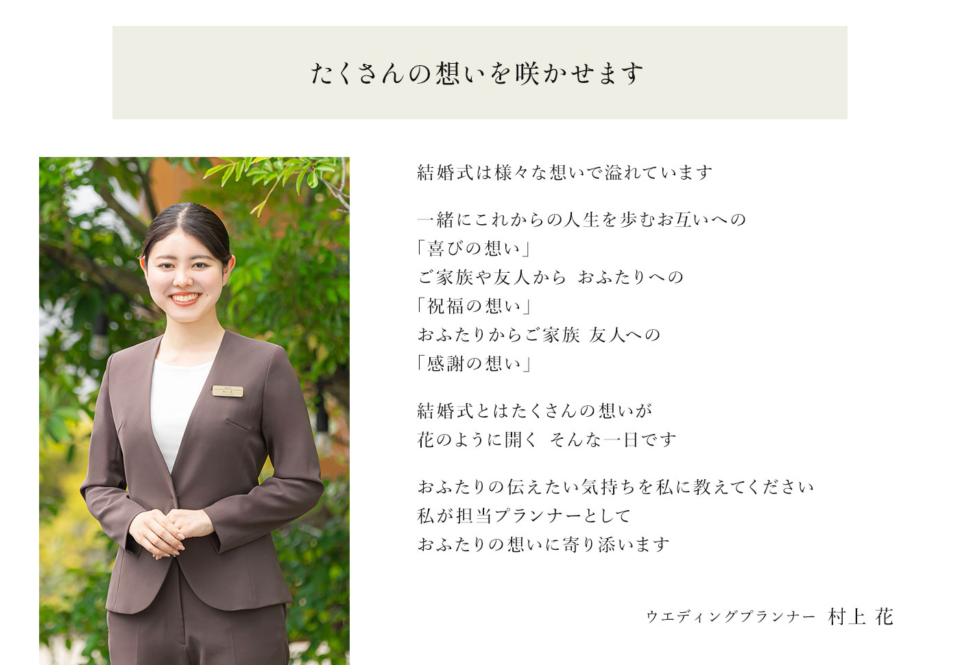 世界にひとつだけ、一度だけの特別な結婚式をお約束します。