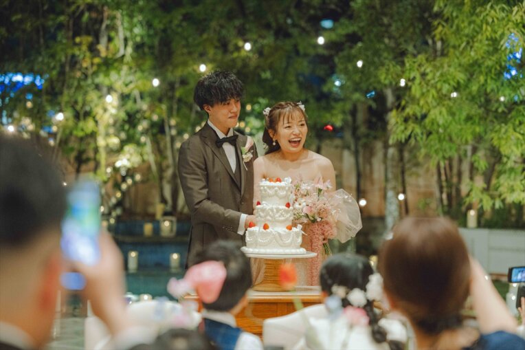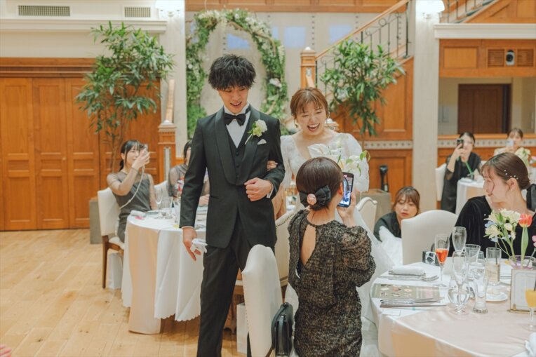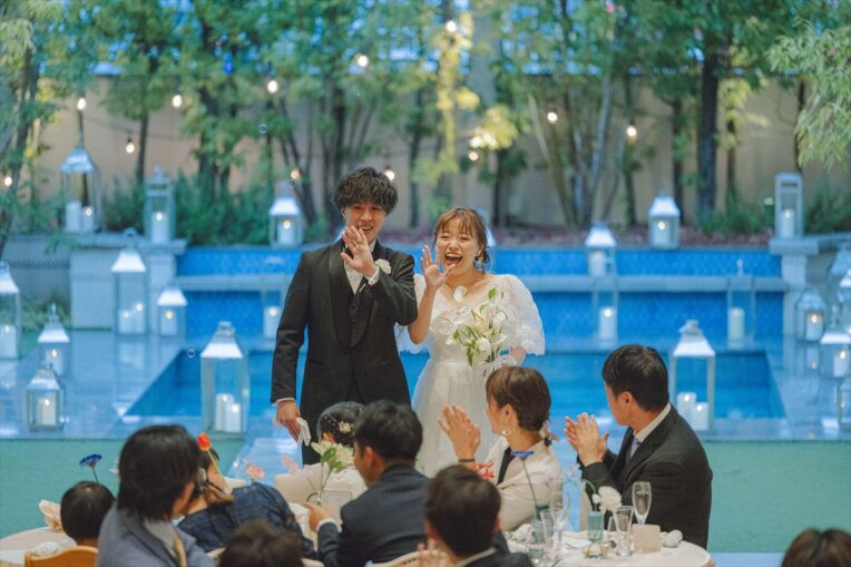 オープンキッチンでは、そうまさんにフランベ演出を行っていただき、その後はご友人からスピーチや余興をしていただき、ゲストの皆様とゆったり歓談のお時間を過ごされました。