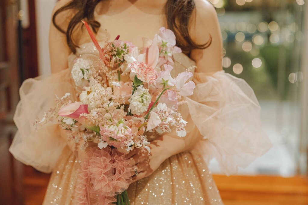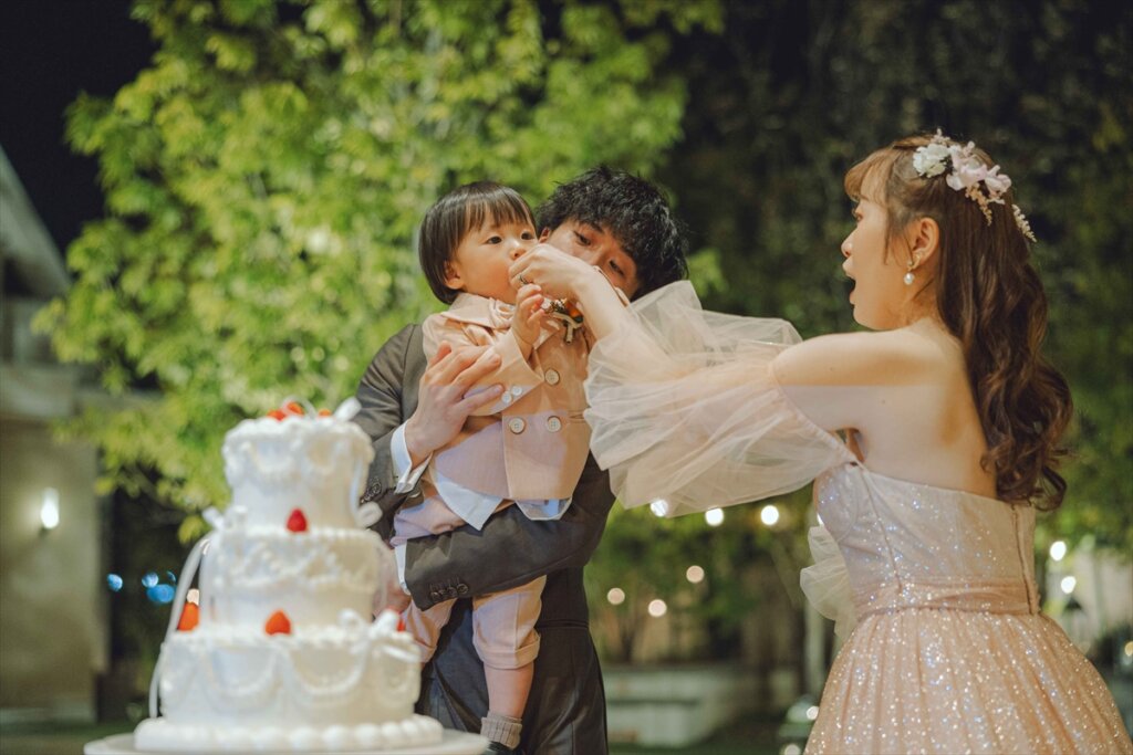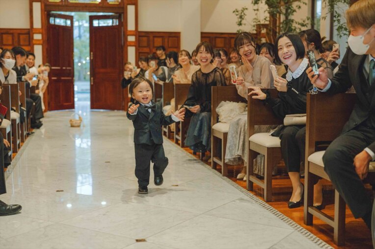 周りのご友人の方をたいせつにされている新郎そうまさん、いつも笑顔で結婚式の準備も楽しみながらたくさん頑張ってくださった新婦もえさん、おふたりが愛してやまないおふたりのお子様りつくん。「結婚式は息子が主役になれる一日になるように」と、りつくんの演出をメインにたくさん準備を頑張ってくださいました。可愛らしいりつくんが大活躍の一日をご紹介いたします。